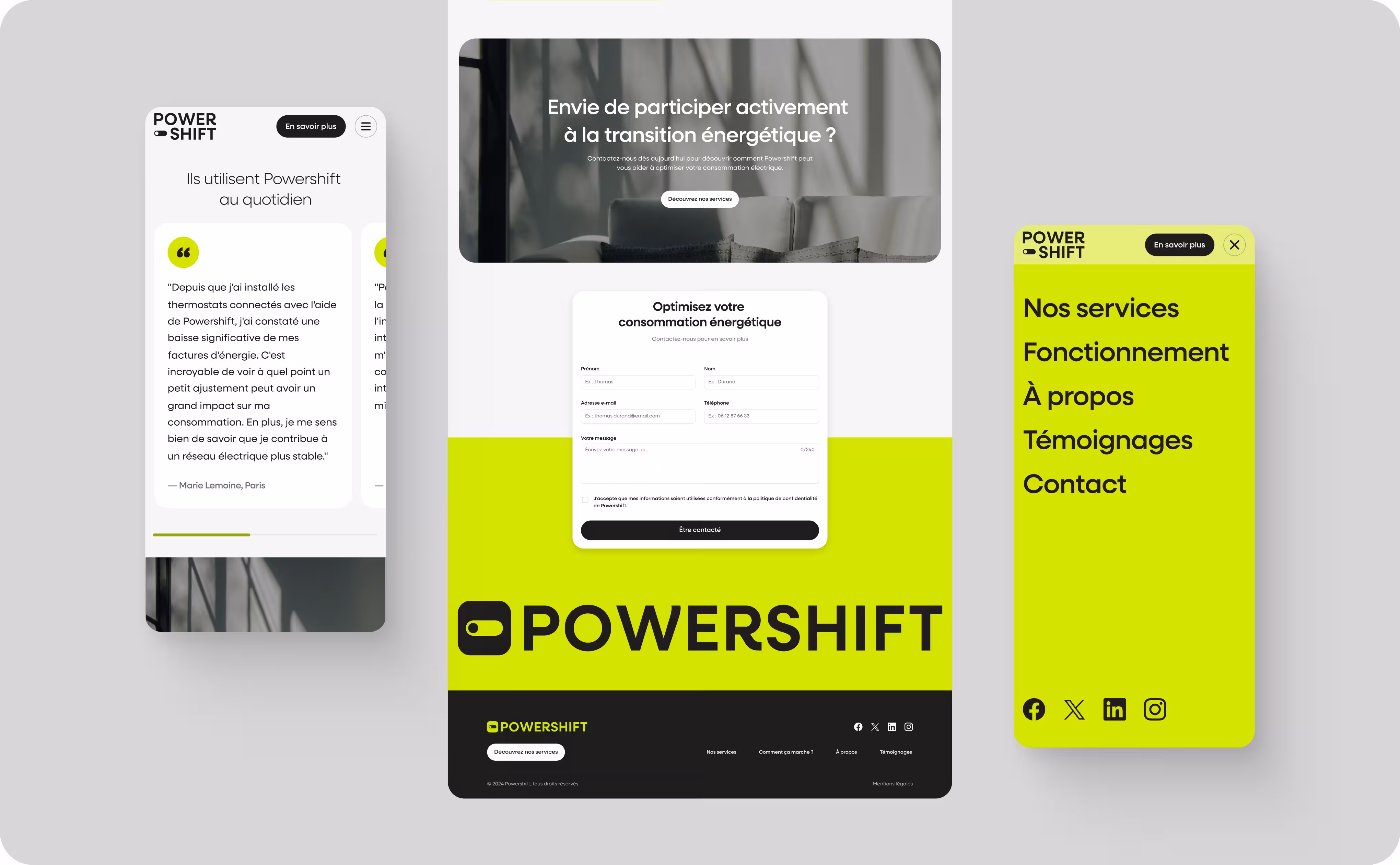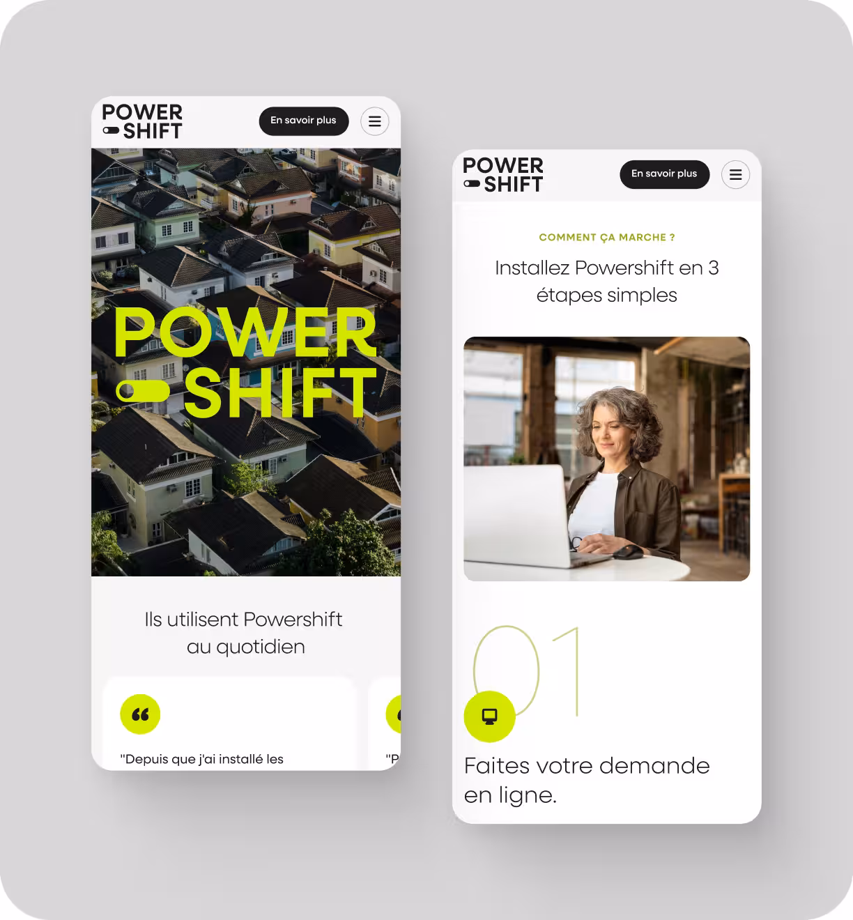 Nous avons conçu une identité visuelle lumineuse et moderne, traduite dans un design system modulaire et mobile-first. Le site vitrine met en valeur les expertises de PowerShift avec une navigation claire, des interactions subtiles et une performance technique optimisée. Un projet qui illustre notre approche : créer des expériences digitales élégantes, cohérentes et alignées avec les ambitions de nos clients.