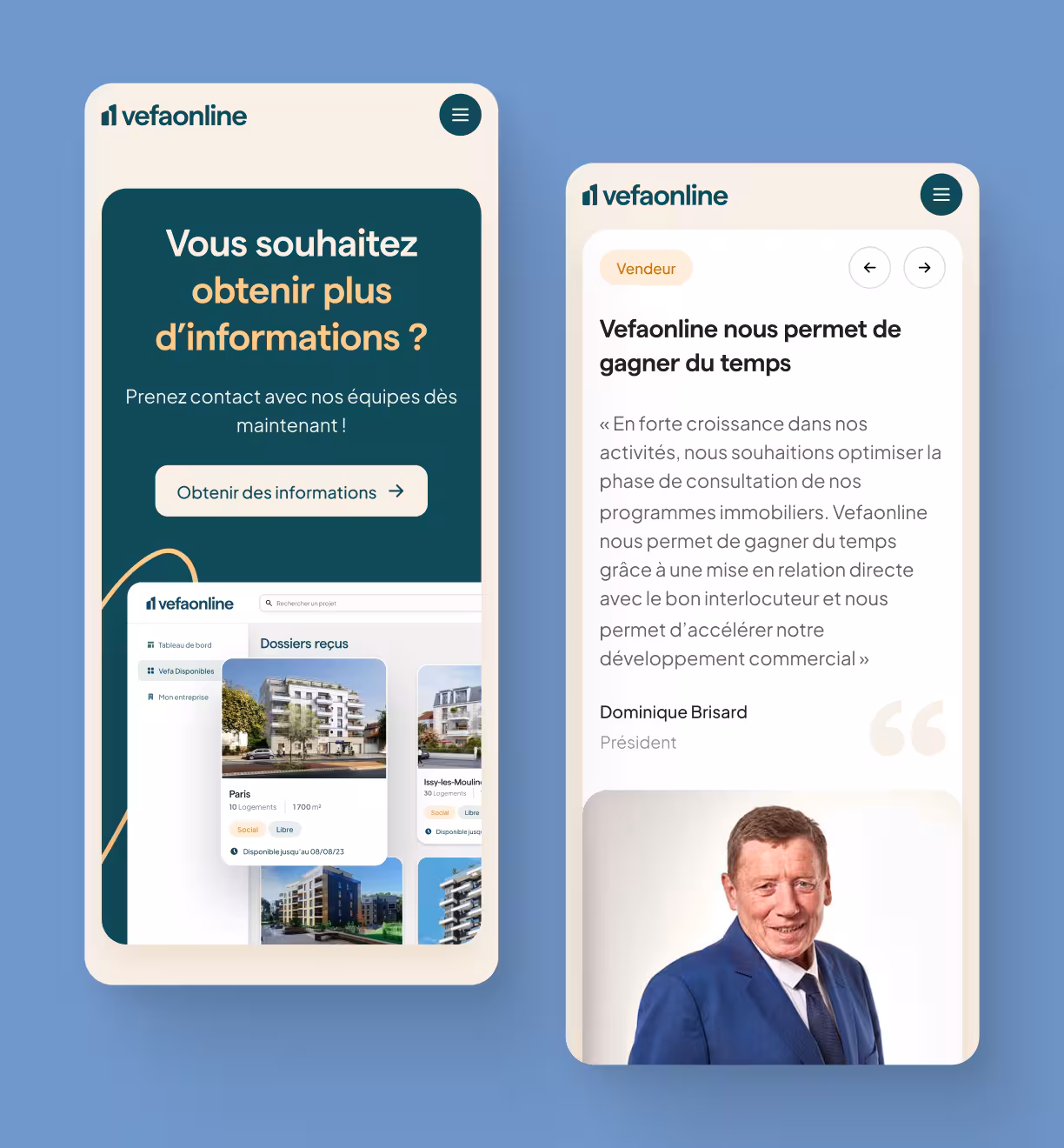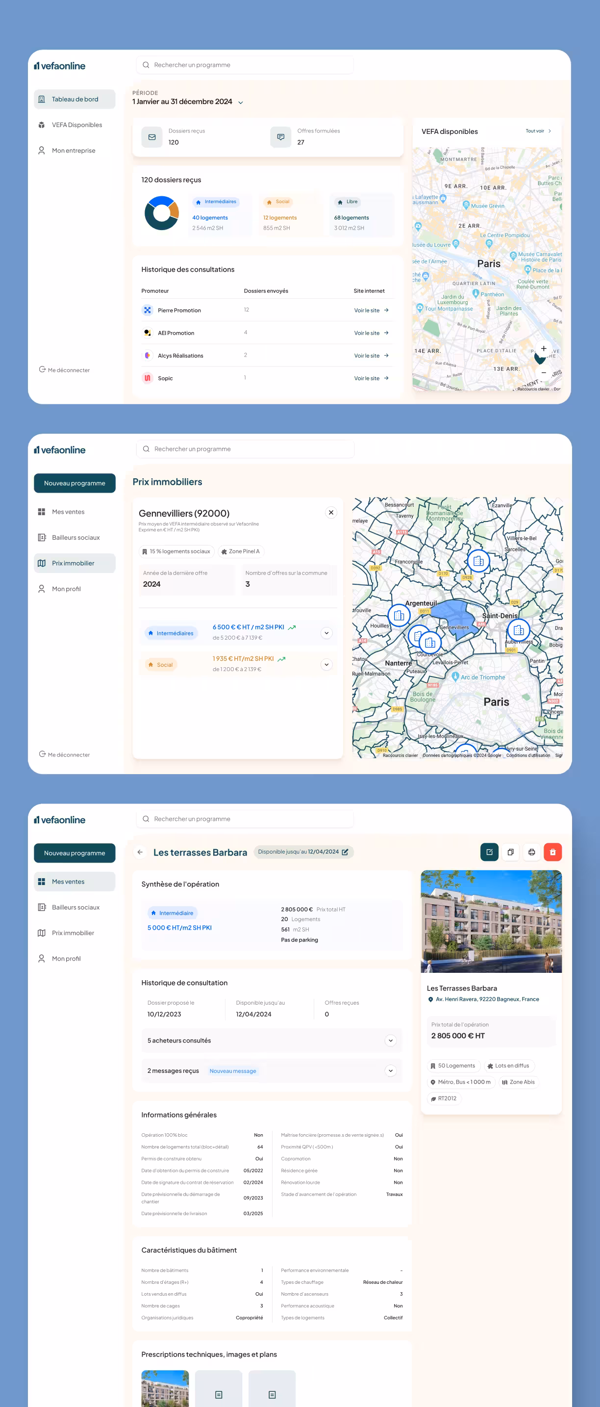 Nous avons imaginé une identité visuelle moderne et crédible, adaptée au secteur immobilier et pensée pour renforcer la confiance et la lisibilité de l’offre. Le site vitrine met en avant l’expertise et la valeur ajoutée de la plateforme avec une expérience simple et orientée conversion. En parallèle, le back-office a été conçu pour optimiser la gestion des opérations immobilières : tableaux de bord intuitifs, organisation des dossiers... Un projet centré sur la performance, la transparence et l’efficacité digitale.